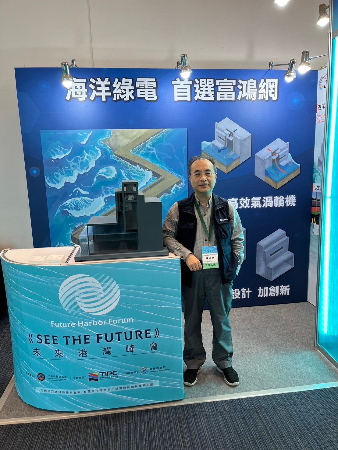富鴻網與國立中興大學土木工程學系博士後研究員柯均瀚合作防波堤式波浪發電機,將水渦輪機放置水中,使用消波艙結合浪的力量,善用其箱體抗震、扛浪的性質,並利用電力轉換器,發電後送往電力公司。